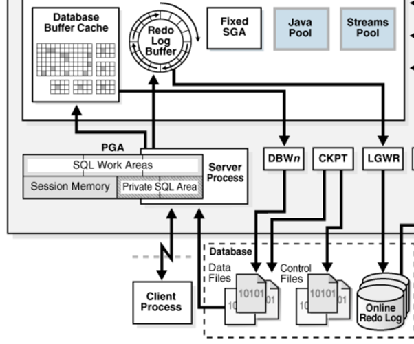 위의 사진은 오라클 공홈 DB 구조 사진을 발췌한 것이다. Oracle의 WAL 작업 아래와 같이 간단하게 설명한다.