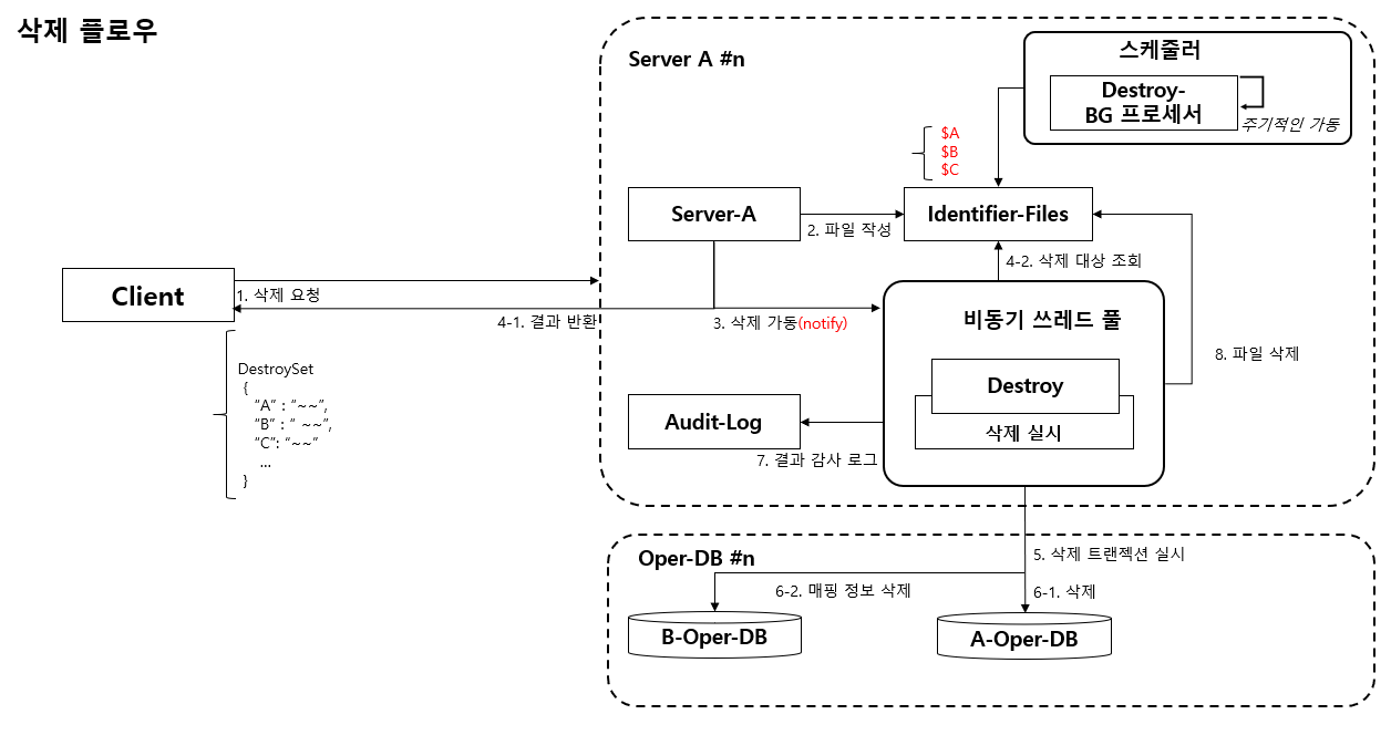 - Server A는 삭제하고자하는 정보들의 식별정보와 삭제 요청한 주체에 대한 정보들을 특정 디렉토리에 기재한다(저널링, 간단한 저널링이다.).